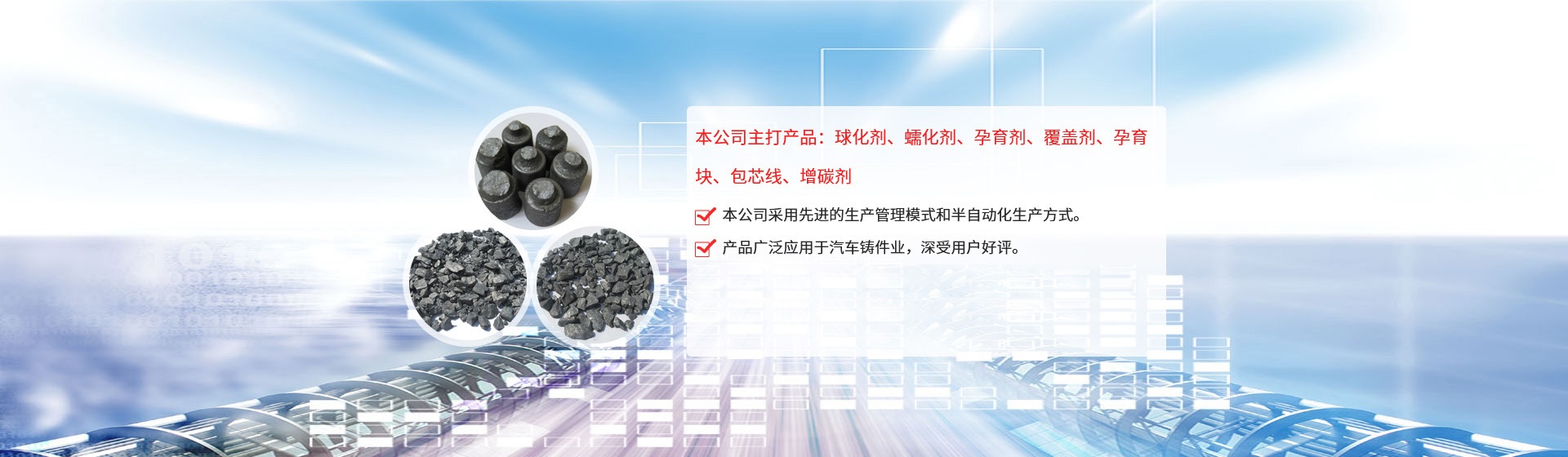 公司引進(jìn)日本企業(yè)的生產(chǎn)管理模式,半自動(dòng)化生產(chǎn)方式。目前生產(chǎn)能力:球化劑250T/月、孕育劑300T/月、鑄造相關(guān)品200T/月。為嚴(yán)格控制產(chǎn)品質(zhì)量,公司采用國(guó)內(nèi)的ICP-AES等離子體發(fā)射光譜儀對(duì)采購(gòu)原